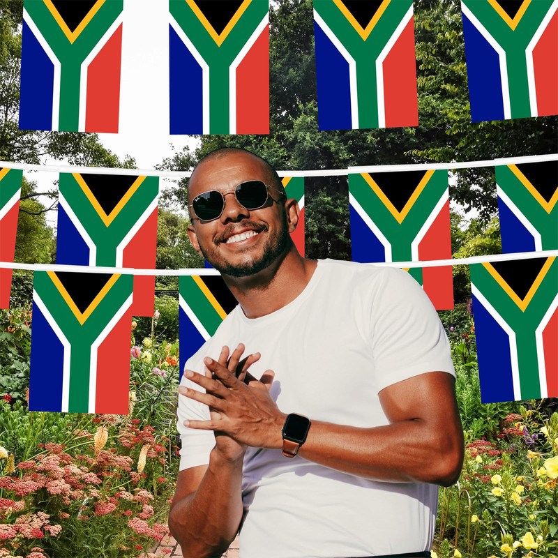South Africa Flags 10 Meters Bunting 30pcs South Africa Flag Garland for Schools Street Party Carnivals Birthday Decorations -100% Polyester Material Fabric - 14 x 21 cm - 10m