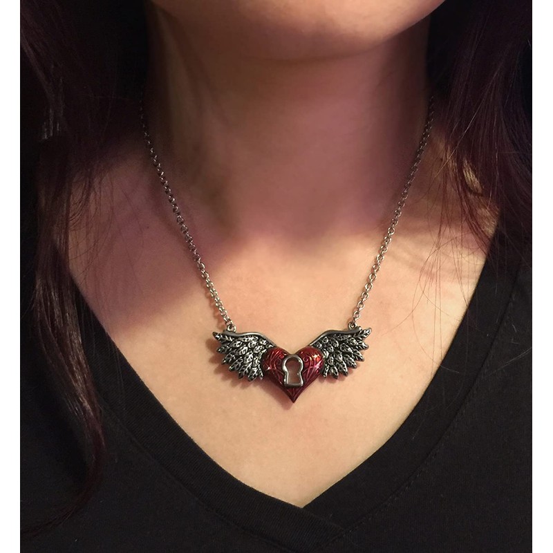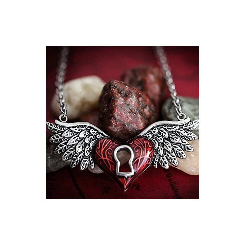southbankstore Angel Wings Heart Necklace Red with Keyhole 316L Stainless Steel Zinc, Zinc