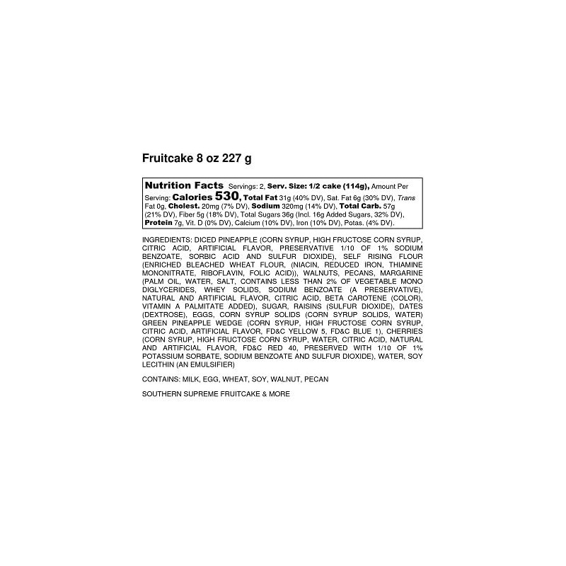 Southern Supreme Fruitcake - 8 Ounce (Pack of Two) Made in U.S.A.