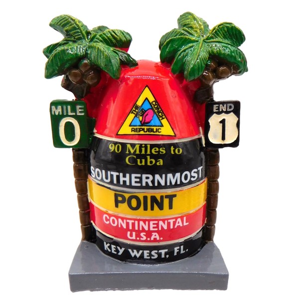 Southernmost Point Statue Mini Desk Figurine with Palm Trees and Mile 0 Key West Florida Home Decoration Souvenir Keepsake, 3 Inch