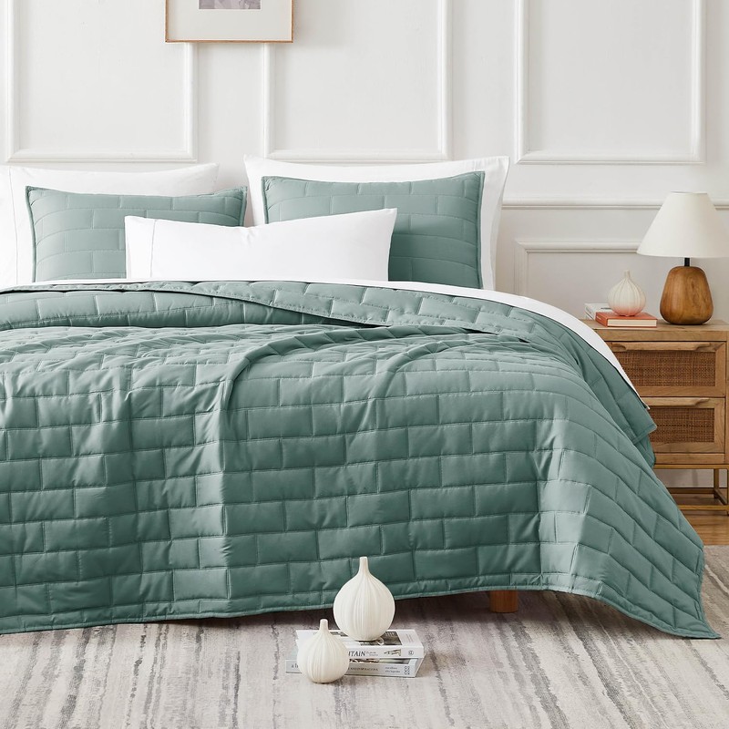 - GORGEOUS BEDDING MAKEOVER IN A BAG: Our brick pattern stitched quilt King size set includes everything you need for a crisp and clean bed makeover, from the King / California King quilt to the coordinating pillow shams, for a classy room decor aesthetic.