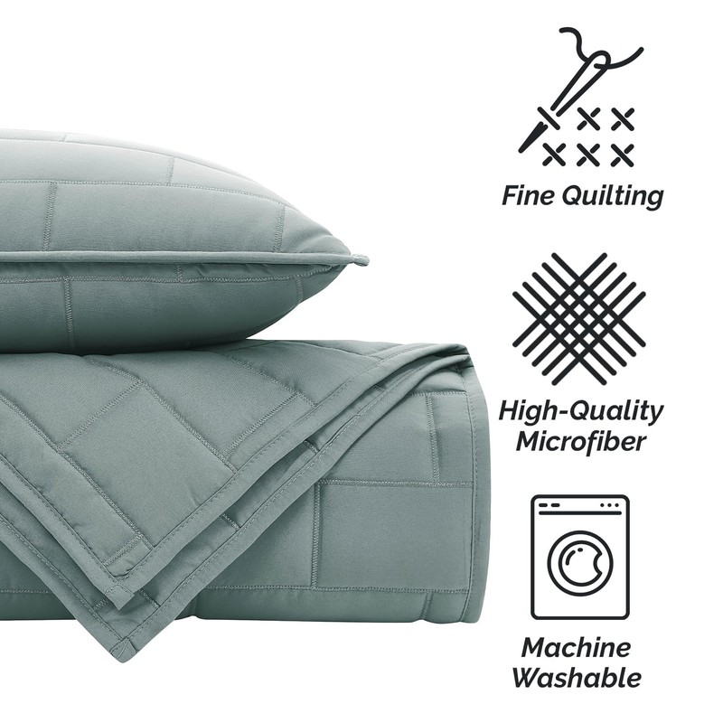 Southshore Fine Living, Inc. Oversize Quilts for King Size Bed, Brick Pattern Stitching, Lightweight Bedding Quilt, Soft Coverlet with Matching Quilted Pillow Shams, California King Bed Spread, Teal