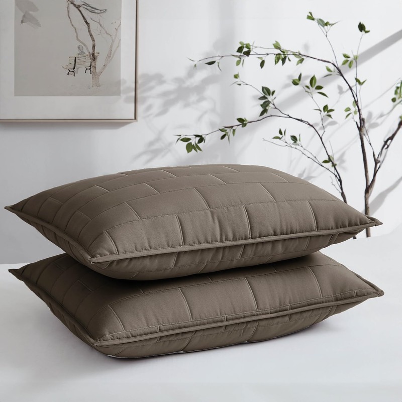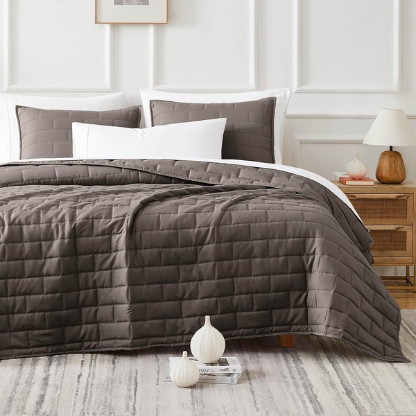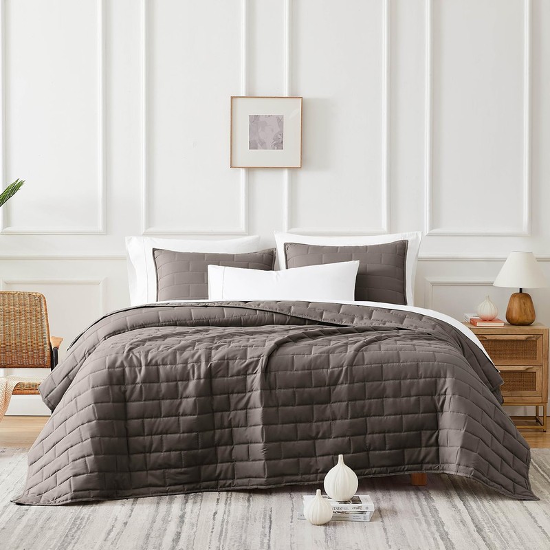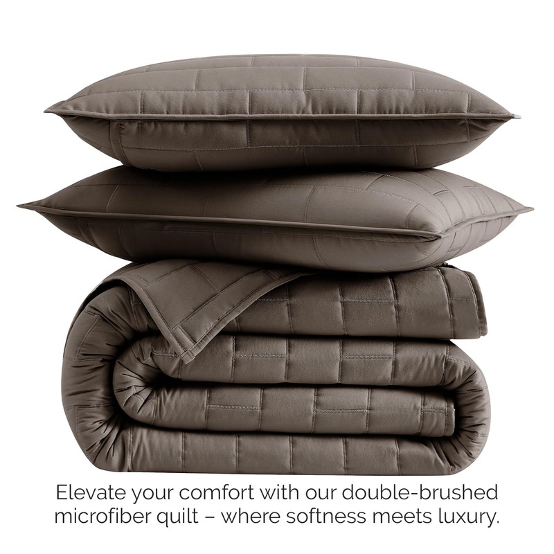 Southshore Fine Living, Inc. Oversized Full/Queen Bedding Quilt, Soft Coverlet, Lightweight Bed Set with 2 Pillow Shams, Symmetrical Brick Pattern Stitching, Bedspreads Queen Size, Dark Taupe