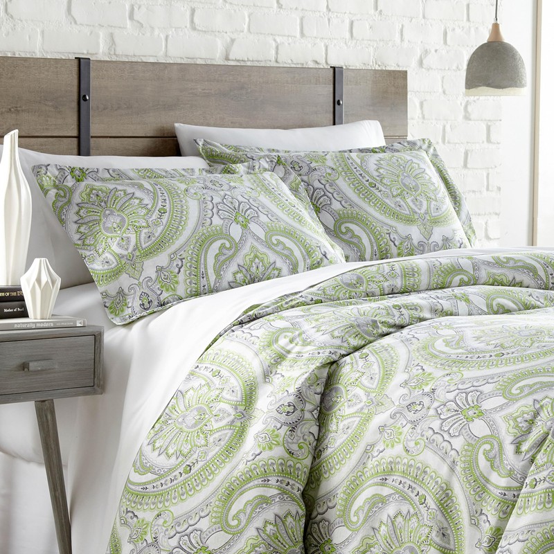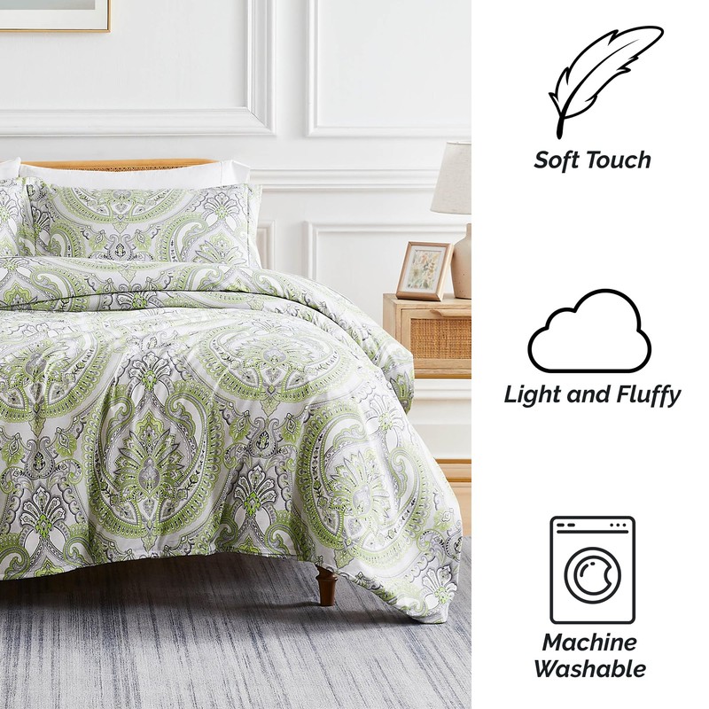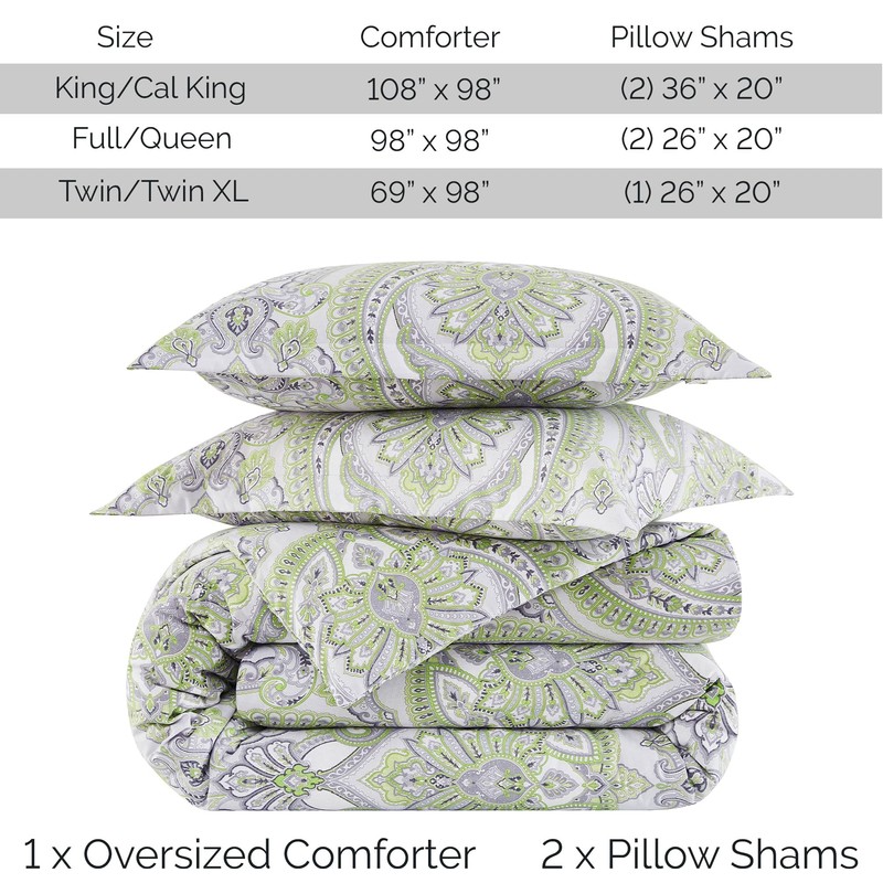 Southshore Fine Living, Inc. Oversized Full/Queen Size Comforter Bedding Set, Boho Bedding, Paisley Print Bedspread, Full Size/Queen Bed Comforter Set with 2 Matching Shams, Pure Melody Green