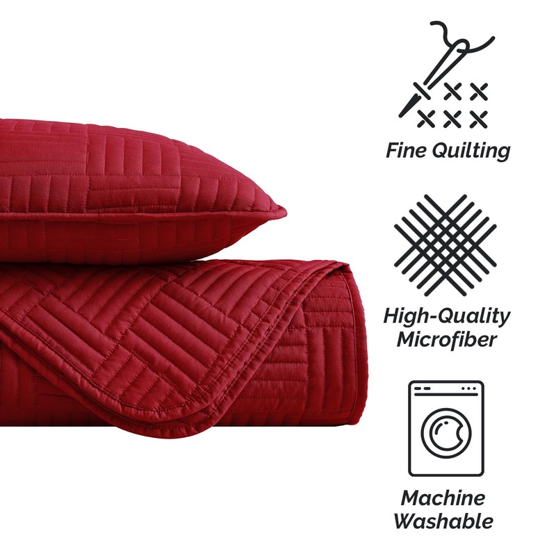 Southshore Fine Living, Inc. Oversized King Quilt Bedding Set Lightweight, Prewash Fabric Soft Coverlet Bedspread 3-Piece, Two Matching Shams (108 in Wide x 98 in Long), California/King, Grid Red