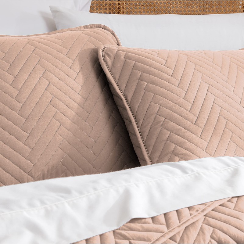Southshore Fine Living, Inc. Oversized Queen Quilt Set, Soft Coverlet Bedspread with Two Matching Shams (98 in Wide x 98 in Long), Brushed Microfiber Quilt for Queen Bed, Chevron Rose Dust