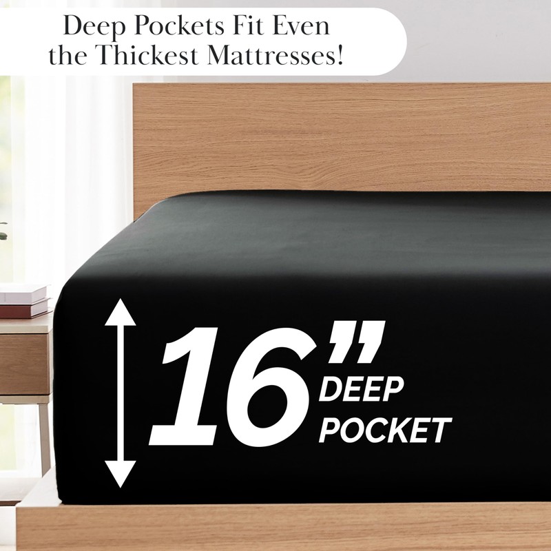 - 16 Inch Deep Pocket Sheet Sets: These fitted sheets will fit mattresses up to 16 inch deep. The all-around elastic on our fitted sheets will cover your luxurious mattress no matter how much you toss and turn. These fitted sheets are premium quality and a snap to put on. .