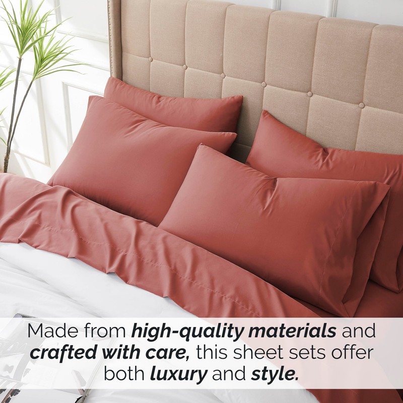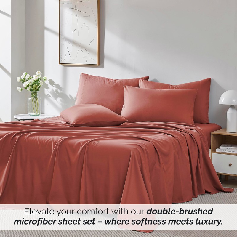 Southshore Fine Living, Inc. Premium Collection, 6-Piece, Deep Pocket Sheet Set, Easy Care, Shrinkage Free Sheet Set with 1 Flat Sheet, 1 Fitted Sheet, 4 Pillowcases, Marsala, Queen