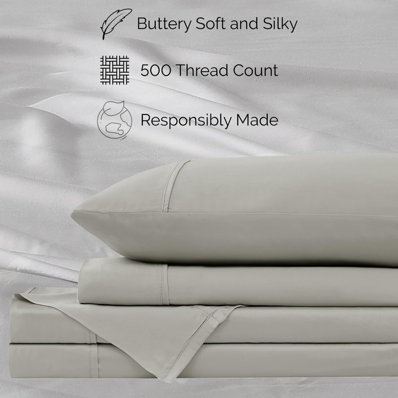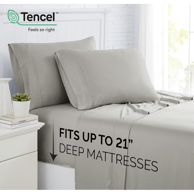 Southshore Fine Living, Inc. Silky Soft Tencel Sheet Set, King Size, Breathable 500 Thread Count King Size Deep Pocket Sheets, 4 Pieces with 21" Deep Fitted Sheet, Flat Bedsheet, 2 Pillowcases; Grey