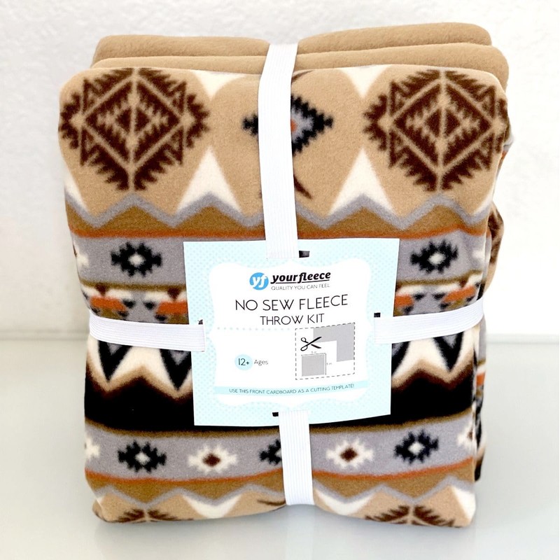 Southwest Desert Neutrals Anti-Pill Fleece Fabric No-Sew Throw Kit (72"x60")