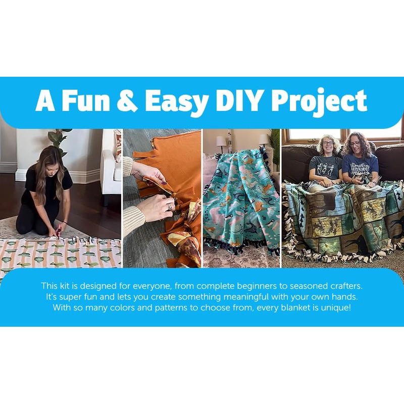 - KIT INCLUDES two pieces of anti-pill fleece and instructions & a template to cut the fringes and tie blanket together.