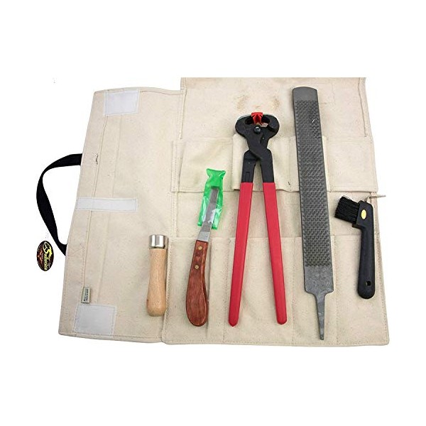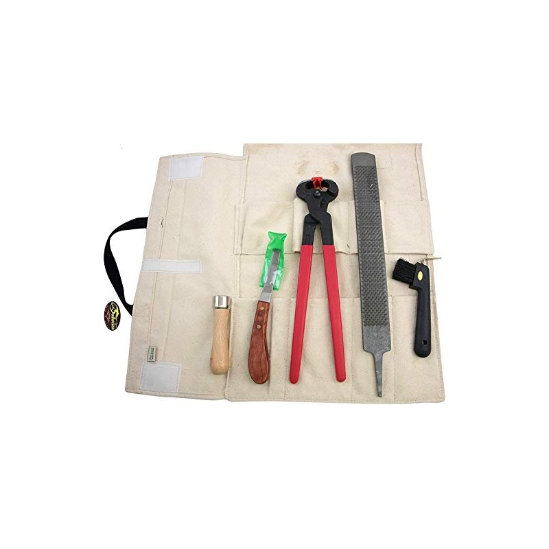 - INCLUDES - Nippers, wrasp, wrasp handle, hoof pick with brush, and knife.