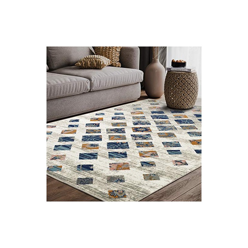 Southwestern Tribal Print 5' 3" x7' 6" Rectangular Area Rug, Porto Collection by Abani Rugs - Beige & Orange Block Pattern Accent Rug
