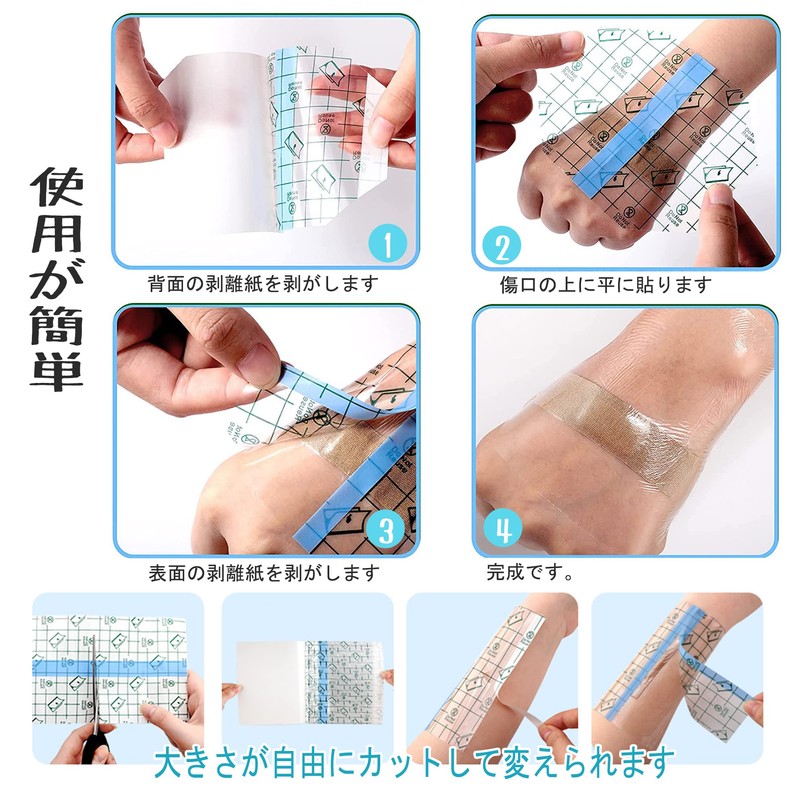 SouZouキズ防水フィルム 大きめサイズ 傷防水テープ キズパワーパッド 大きめサイズ キズに保護テープ 防水ドレッシング キズに保護フィルム (幅10cm)