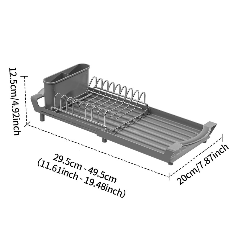 - Expandable Design for Versatile Fit -This expandable dish drying rack extends from 11.6" to 19.5" in length, fitting perfectly over sinks or on kitchen countertops. When not in use, simply slide it back to save space-ideal for small kitchens, RVs, and apartments.
