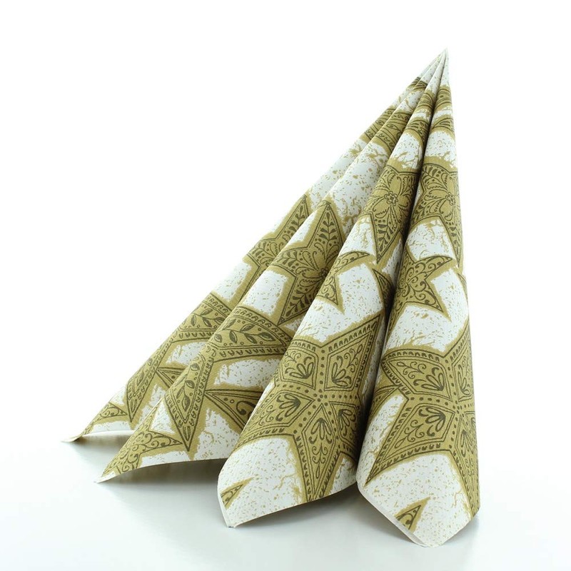 The elegant and delicate ornaments in the star motif of the GITTE design make it an ideal companion for your table top decoration at Christmas time. The motif in all-over print is available in the three elegant colour variants gold black, cinnamon and silver blue. Add elegance to your Christmas table top decoration - with our star motif GITTE! Transform your tables into stylish decoration worlds with this design that you can combine with our plain colours. Our tried and tested Linclass airlaid quality, fabric-like in handle and look, guarantees a touch of luxury on your tables.