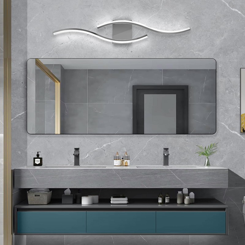 - Modern design: The modern vanity light adopt a design concept that combines chrome tones and wavy shapes, which is simple yet elegant. The chrome vanity light uses a color temperature of 6000K. Dimmable modern bathroom light are dimmable via a dimmer switch, with a 10%-100% dimming range, and measure 33.5 inches (length) x 5.9 inches (width) x 2inches (height), has a power of 26W, and operates on 110V