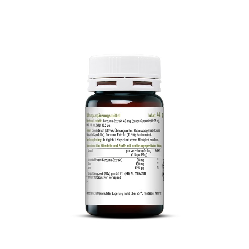 Curcuma extract 40 mg (of which curcuminoids 38 mg), choline 100 mg, selenium 12.5 μg.
