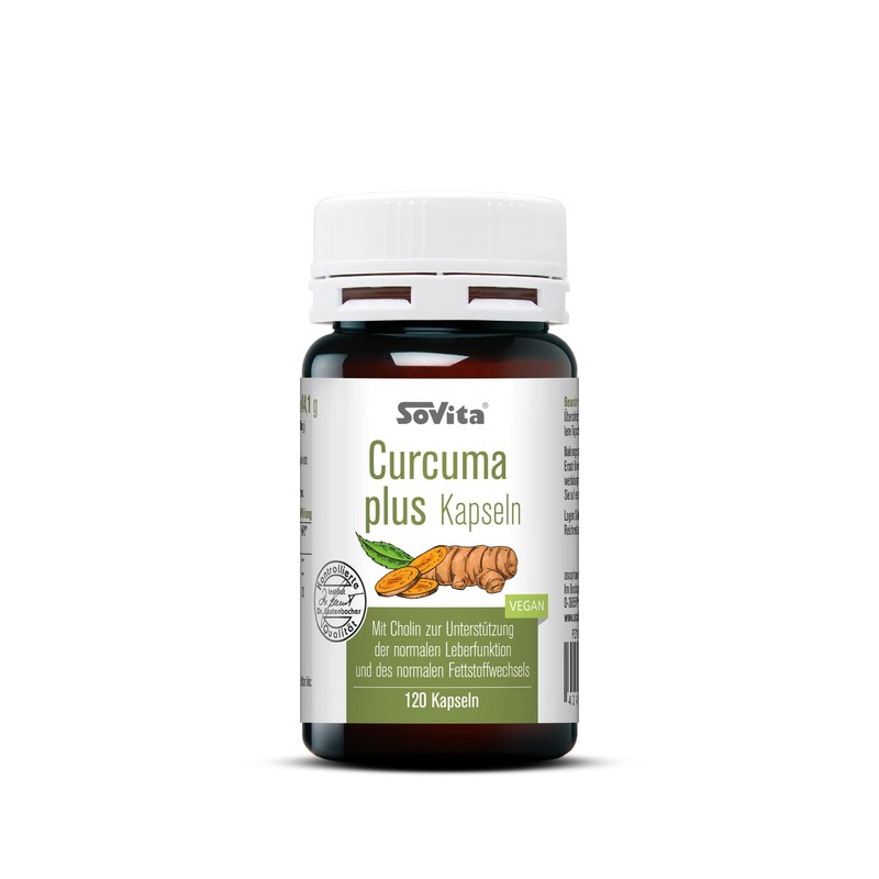 Sovita Curcuma Plus Capsules with Choline to Support Normal Liver Function and Normal Fat Metabolism, Vegan Dietary Supplement, 120 Capsules