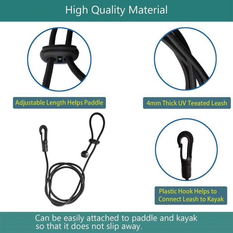 - Quality materials: The kayak paddle leash made of high quality nylon, the paddle leash is super elastic, the plastic hook is strong and Durability. You and your family can use it with confidence.