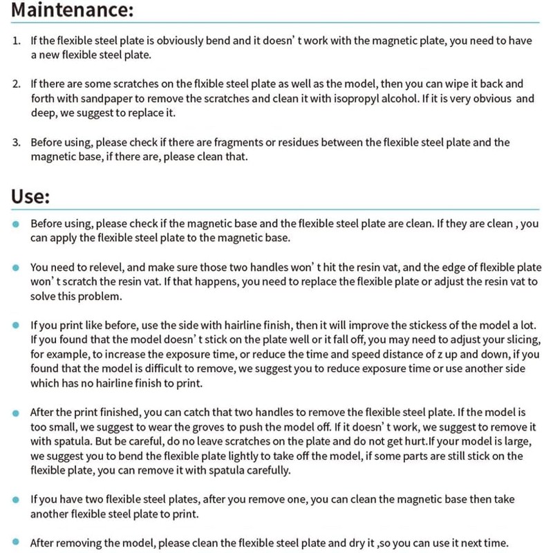 - !!! Please clean up your build plate with alcohol to make sure there is no any resin or dust left on the surface. The build plate must be clean and dry. And you need to stick and compact the magnetic base on build plate to make sure no any bubbles. Otherwise the magnetic base would peel off. Please wait for 72 hours after installation and before printing. Tips: You can use hair dryer blow the magnetic base evenly with hot wind for 5-10 mins after installation to increase the adhesion.