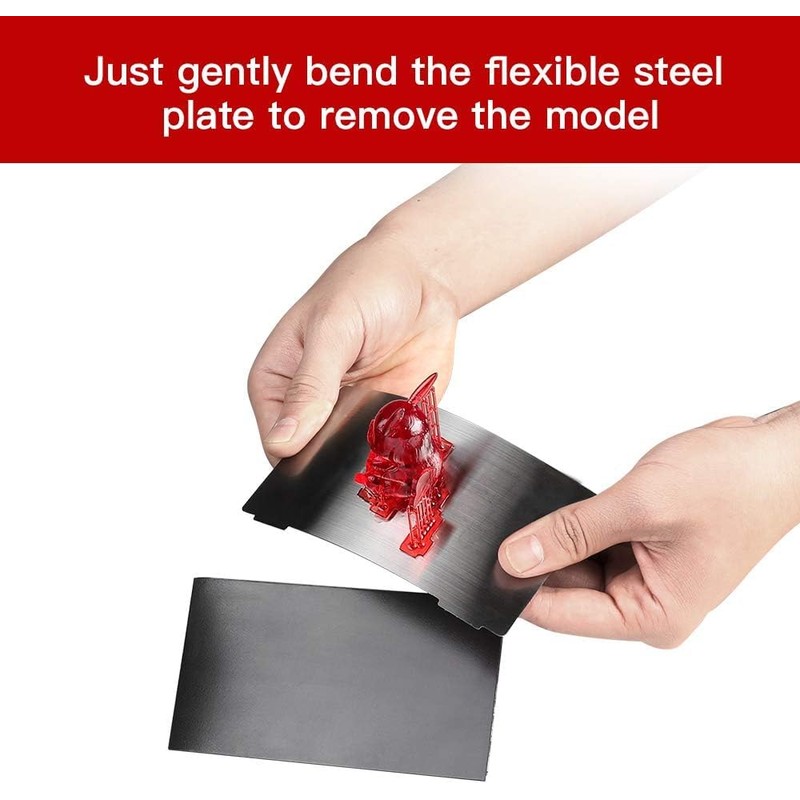- Spring steel plate with high chromium content, easy to bend and clean. Much easier to remove prints and avoid damages during the process, especially for small prints. Good corrossion resistance and prevent rust. Brushed surface provides better adhesion, ensure a perfect print.