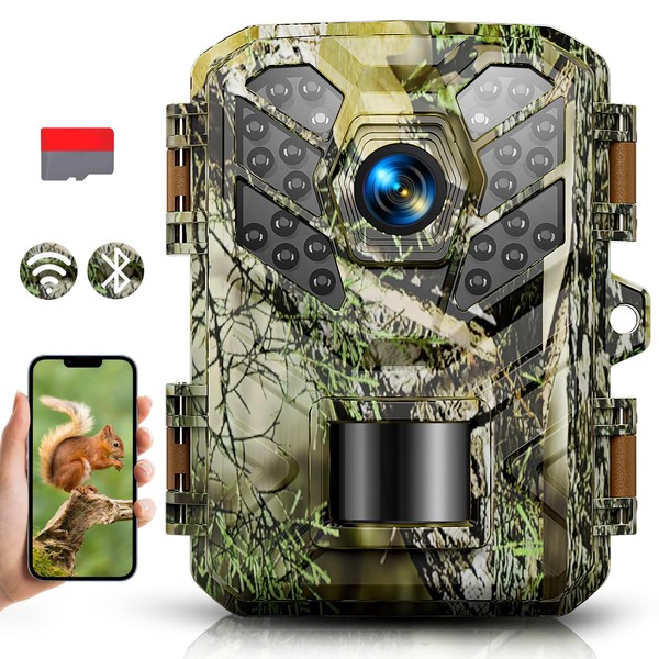 Sovonix Trail Camera WiFi Bluetooth with App, 48MP 1080P Wildlife Camera with Night Vision Motion Activated, 0.1s Trigger Speed, 90°Detection Angle with 32GB Card for Nature Wildlife Scouting