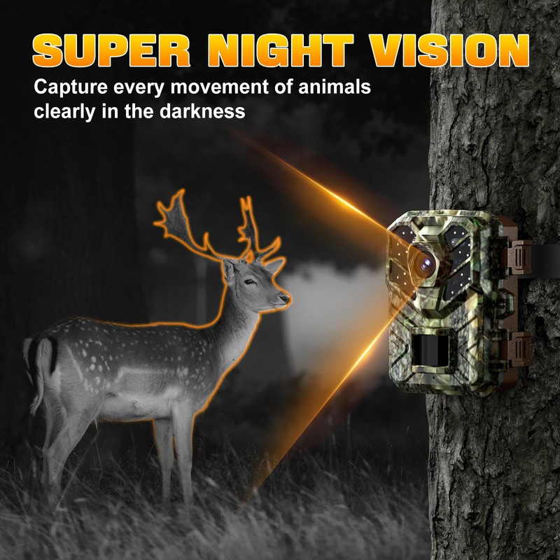 - 🌙Superior Night Vision: When the forest goes dark, this camera shines. Featuring powerful 850nm infrared LEDs, this wildlife camera with night vision motion activated delivers crystal-clear images even in total darkness — up to 20 meters away. It works silently and discreetly, so your nighttime visitors won’t even know they’re being filmed.