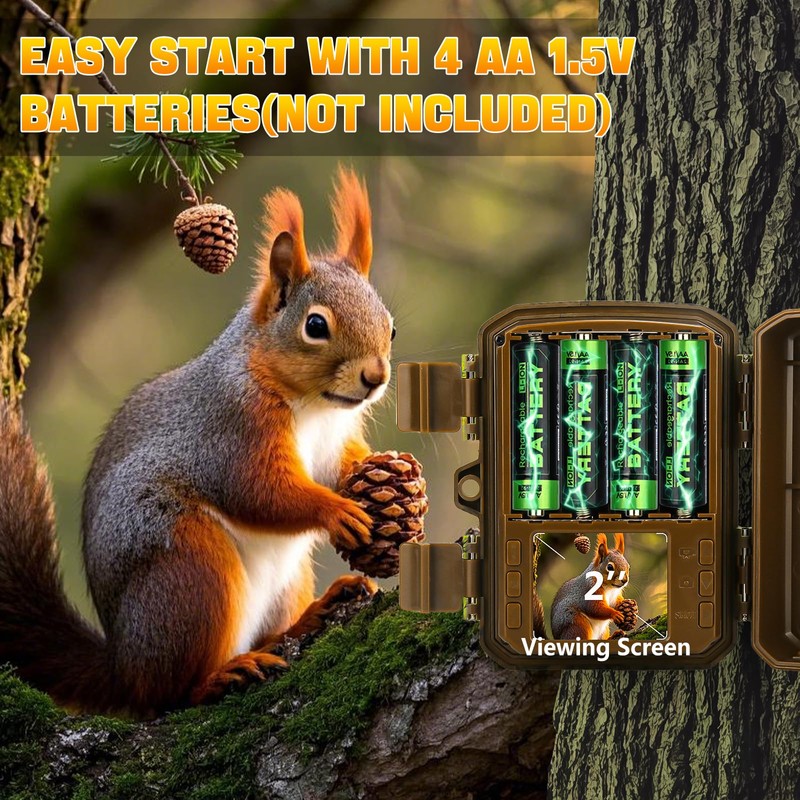 - 🎥User-Friendly and Multifunctional: With a 32GB SD card included and a bright 2.0-inch LCD screen, this wildlife camera WiFi unit is easy to use from day one. Explore a host of smart features like loop recording, time-lapse, audio, timestamping (with date and temperature), password protection, and more. Whether you’re a first-time user or a seasoned nature-watcher, it’s got all you need in one reliable package.