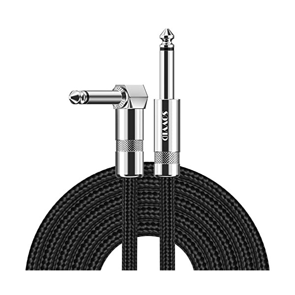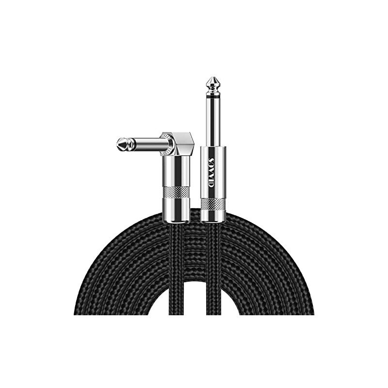 - 🎸[High Performance, Lifetime Warranty]: Sovvid 1/4 inch straight and right angle nickel-plated plug is anti-oxidant and excellent conductivity. The rotatable copper casing protect the soldered connections better, special internal rubber to prevent the core from vibrating. Those ensures a secure connection in any instrument, allows for many years of trouble free usage. Say bye to sound of electric current.