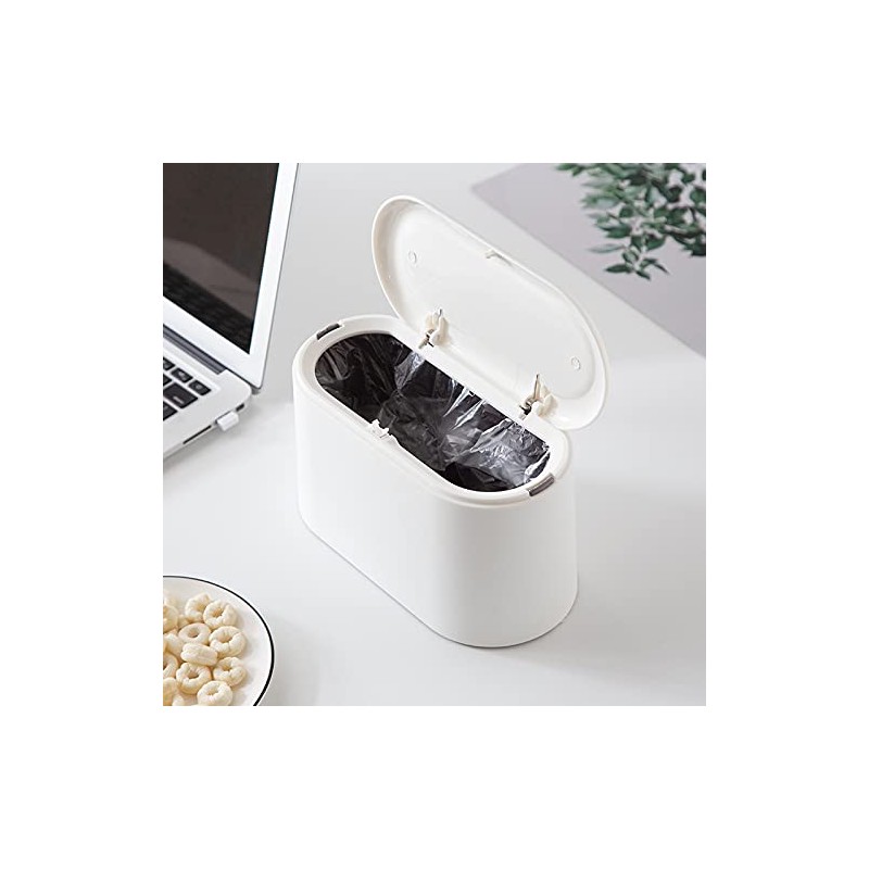 SOVYOULIVE Mini Countertop Trash Can, Small Desktop Garbage Can for Office, Tiny Wastebasket, Plastic, White