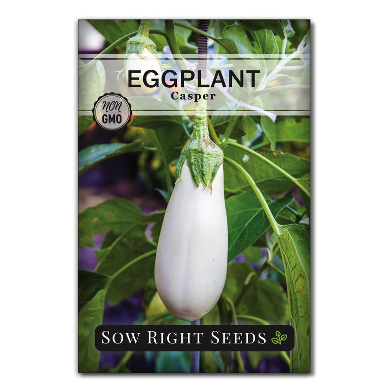 Sow Right Seeds - Casper Eggplant Seeds for Planting - Unique White Heirloom Compact Variety - Non-GMO Packet with Instructions to Plant an Outdoor Home Vegetable Garden - Sweet Mild Flavor (1)