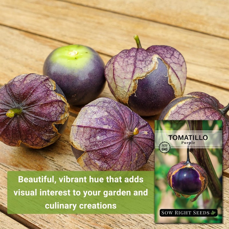 - Beautiful – Large premium packet of Purple Tomatillo (Physalis ixocarpa) seeds. Easy to grow, tomatillo plant that produces high yields of flavorful deep purple tomatillos throughout the season. Purple tomatillos add lovely color and zip to salsas, sauces, and other dishes. Minimum of 100 mg per packet (about 65 seeds).