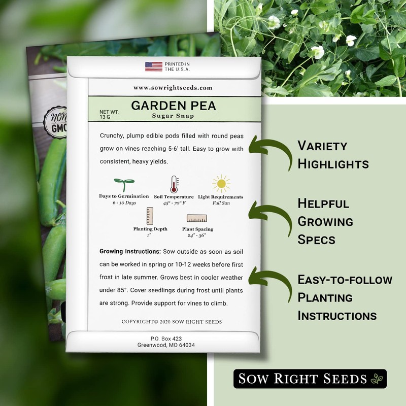 Sow Right Seeds Sow Right Seeds - Sugar Snap Pea Seeds for Planting - Non-GMO Heirloom Packet with Instructions to Plant a Home Vegetable Garden - Grow Tons of Delicious Pods - Cool Season Crop, Super Productive (2)