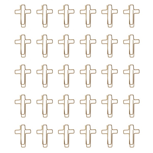 SOWAKA 30 Pcs Cross Bookmarks Metal 3.4 x 2.3 cm Bible Small Cute Paper Clips Supplies for Students Journaling Notebook Document Organization School Office Accessories (Gold)