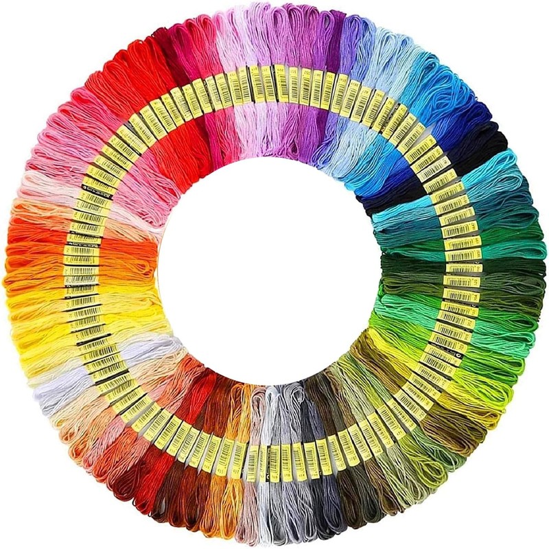 Colorful embroidery thread set. Embroidery thread length is about 8m/bundle. The two thin threads are intertwined with 6 strands, making them durable and difficult to cut.