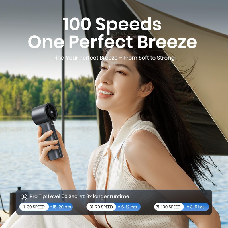 Sowmow Portable Handheld Turbo Fan, 100 Speeds Adjustable Mini Personal Fan, 4500mAh USB-C Rechargeable Battery Operated, Digital Display, Ultra-Quiet & Durable for Travel, Office, Gym, Outdoor Black