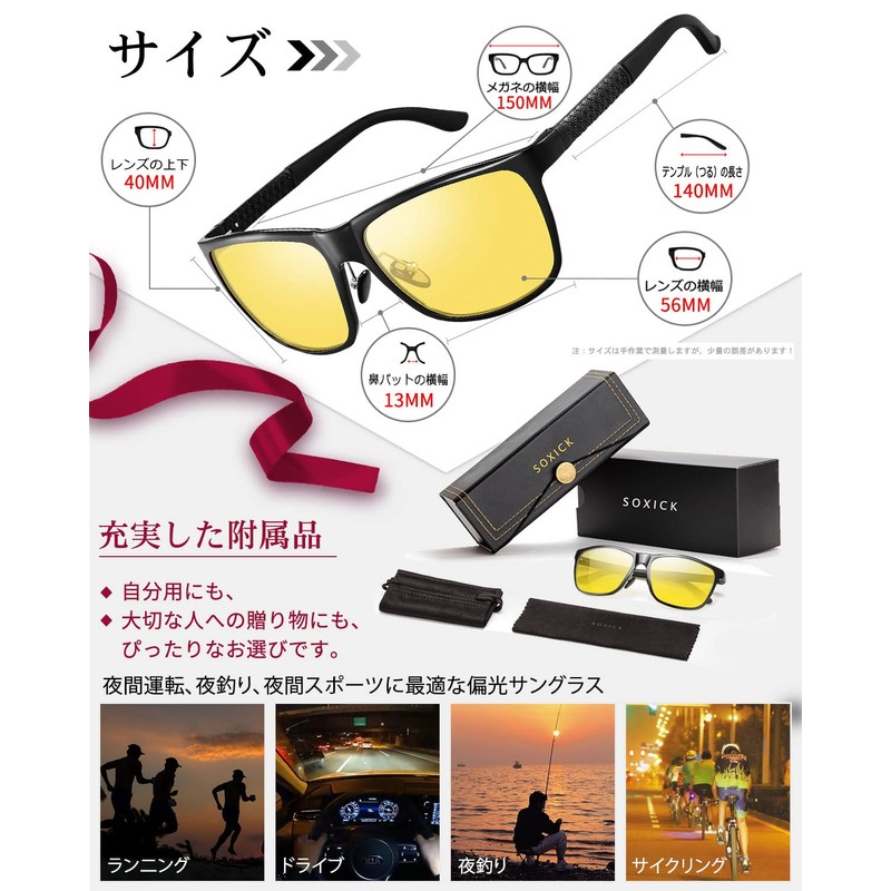 [SOXICK] 夜間運転用 偏光サングラス ヤカン ドライブ スポーツ イエローレンズ 黄色 夜釣り 夜用 ナイトドライビングサングラス メンズ レディース 男女兼用 8638
