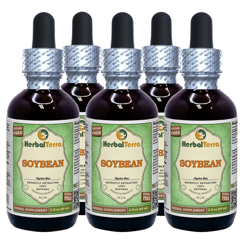 Soybean (Glycine Max) Glycerite, Dried Beans Alcohol-Free Liquid Extract (Brand Name: HerbalTerra, Proudly Made in USA) 5x2 fl.oz (5x60 ml)