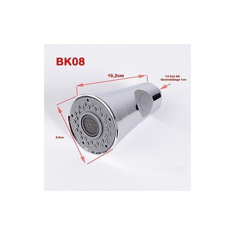 Ersatz/Dusche Sp1le Dusche Waschbecken Dusche (BK08)- Lieferumfang: eine Dusche wie abgebildet, ohne Zubeh?r (nur Dusche, kein Schlauch oder Dichtung..)- Ersatzbrause f1r Sp1ltischarmatur mit 1/2 Zoll Au?engewinde Genormter Anschluss f1r viele Anschl1sse- Gewinde: 1/2 Zoll, Gewindel?nge 1 cm.- Einstellbar von Perlstrahl auf Brausestrahl- Gewinde: Gesamtl?nge 10,2 cm. Durchmesser der Dusche: 5,5 cm.