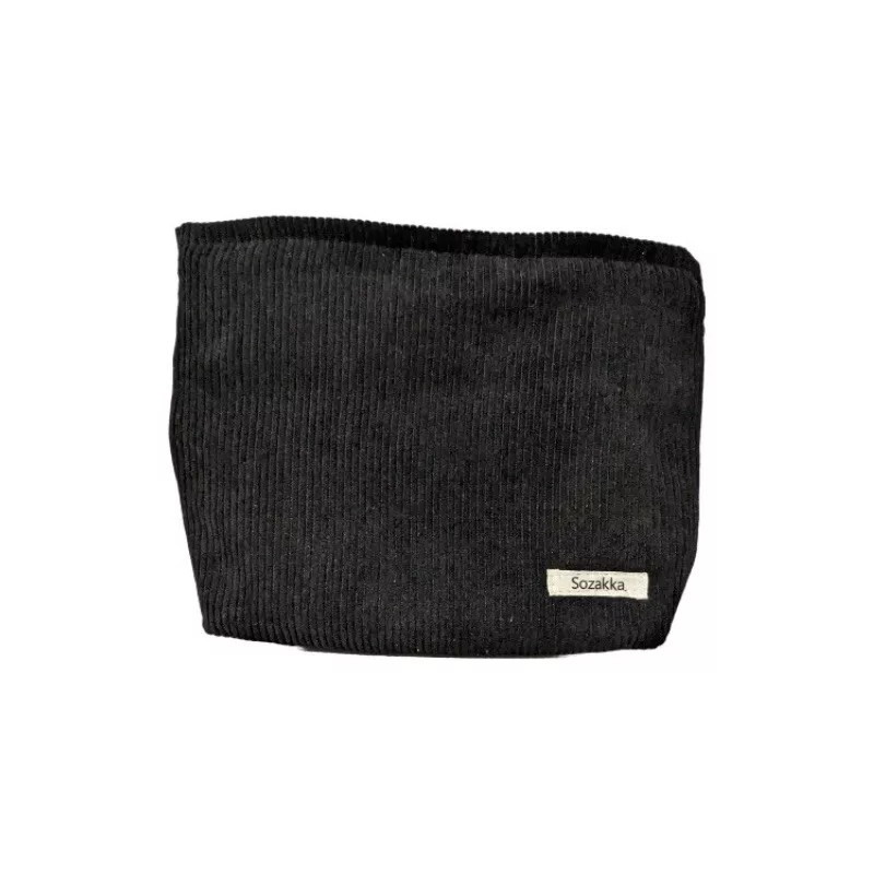 Sozakka Corduroy Cosmetic Bag with Zipper, great travel bag Large Capacity Black