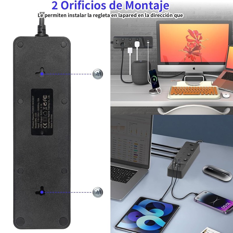escritorio multicontacto con 6 enchufes anchos y 4 puertos de carga USB inteligentes para satisfacer sus diferentes necesidades. Ocupa muy poco espacio en tu escritorio o en el suelo y hace que todo luzca bonito y organizado. Adecuado para el hogar y la oficina (por ejemplo: escritorio de oficina, sofá, sala de conferencias, mesita de noche, viajes, etc.)