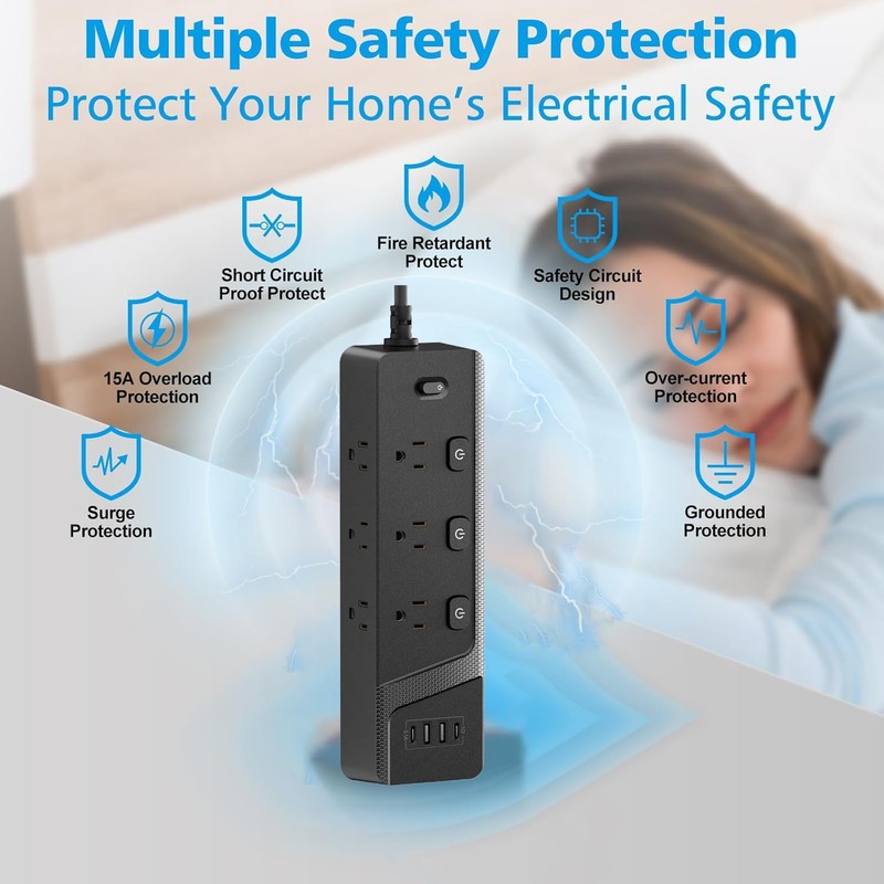 - 【Medida de Seguridad】extension usb,La Regleta de Alimentacion Multicontacto Adopta Una Carcasa de Pc Ignífuga. Este enchufe multicontacto USB adopta una carcasa de ABS + PC ignífuga y 4 interruptores de alimentación independientes, Con Protección Contra Sobrecarga, Protección Contra Sobretensiones, Protección Contra Rayos y Protección de Conexión a Tierra, Puede Proteger Su Equipo de Manera Más Rápida y Confiable.