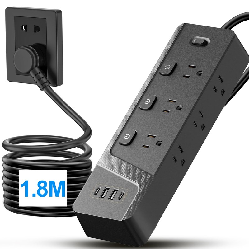 - 【Extensión Eléctrica】extension electrica,La Regleta Tiene un Cable de Extensiones de 1,8 Metros (6 Pies) de Largo, Que Es Perfecto para Mover y Conectar Dispositivos Que Requieren Una Cierta Distancia, Proporcionando Un Suministro de Energía Flexible Para Sus Dispositivos, Creando Una Ubicación Conveniente en el Hogar, Entretenimiento. Centro o Zona De Trabajo, para Que Tus Dispositivos Electrónicos Estén al Alcance.