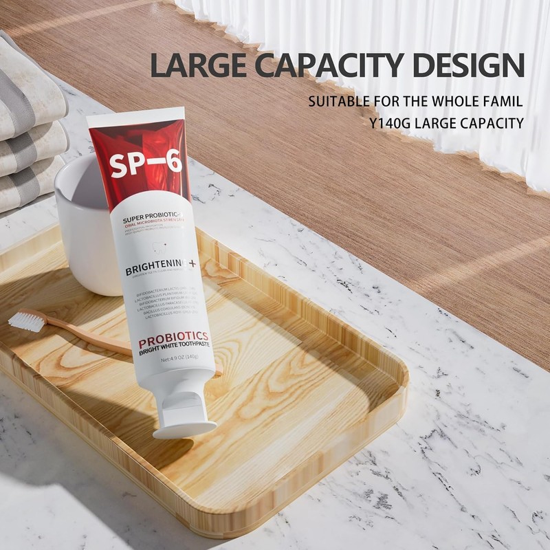 SP-6 Probiotic Whitening Toothpaste, Sp-6 Ultra Whitening Too thpaste, Enhanced Formula with 6 Probiotics, Fluoride-Free, Minty Fresh Flavor, 4.9 oz