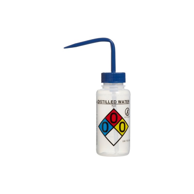 - Wide-mouth wash bottle used to wash labware and to store washing solutions, such as acetone or deionized water