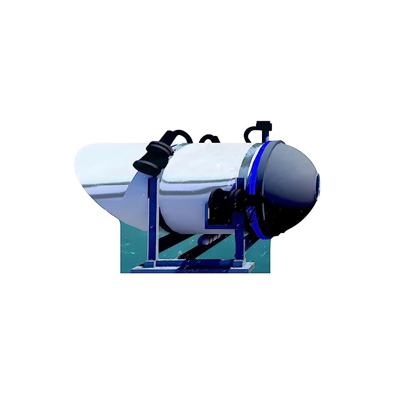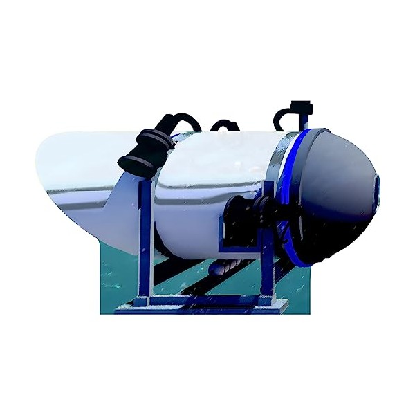 76x47 inch cardboard cutout. Cardboard cutout of the submersible that went to explore the Titanic shipwreck on June 2023. The submersible was made by a company that makes submersibles for both commercial expeditions and for tourism.