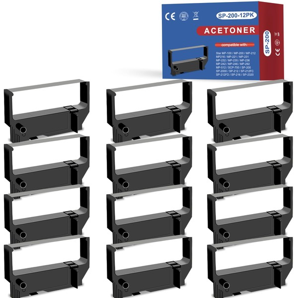 SP200 Black Ink Ribbon Replacement for Star SP200 Black Ribbon Used with Star Micronics SP200 SP-200BK SP-500 SP-2000 SP-512 SP-542 SP-2360 RC200 Receipt POS Printer (12 Pack)