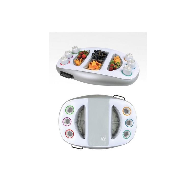 - This Life Deluxe inflatable spa bar includes a large storage center covered with treats. Includes six drink holders with a selection of colours so everyone can keep track of their drink. The floating design means that the Life Deluxe Inflatable Spa Bar will not spill when handling your drink.