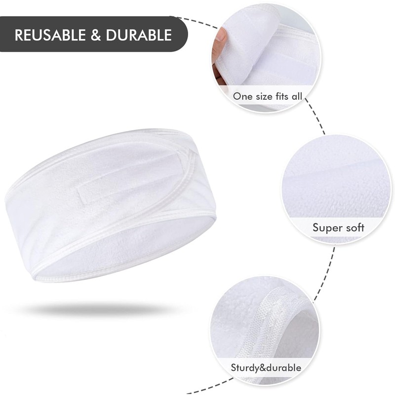 • Material: Soft towel-like material, absorbent, easy to clean, plus the thickness and adjustability of these makeup headbands make it easy to use, won't mess up your hairstyle or dent like regular headbands, it's super easy put on and take off without messing up your makeup.